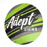 Likewise, Adept Signs cannot guarantee that any graphics purchased elsewhere will fit frames provided by Adept Signs. Errors made due to mixing-and-matching hardware and/or graphics not provided by Adept Signs will not be refunded due to the custom nature of printed graphics.